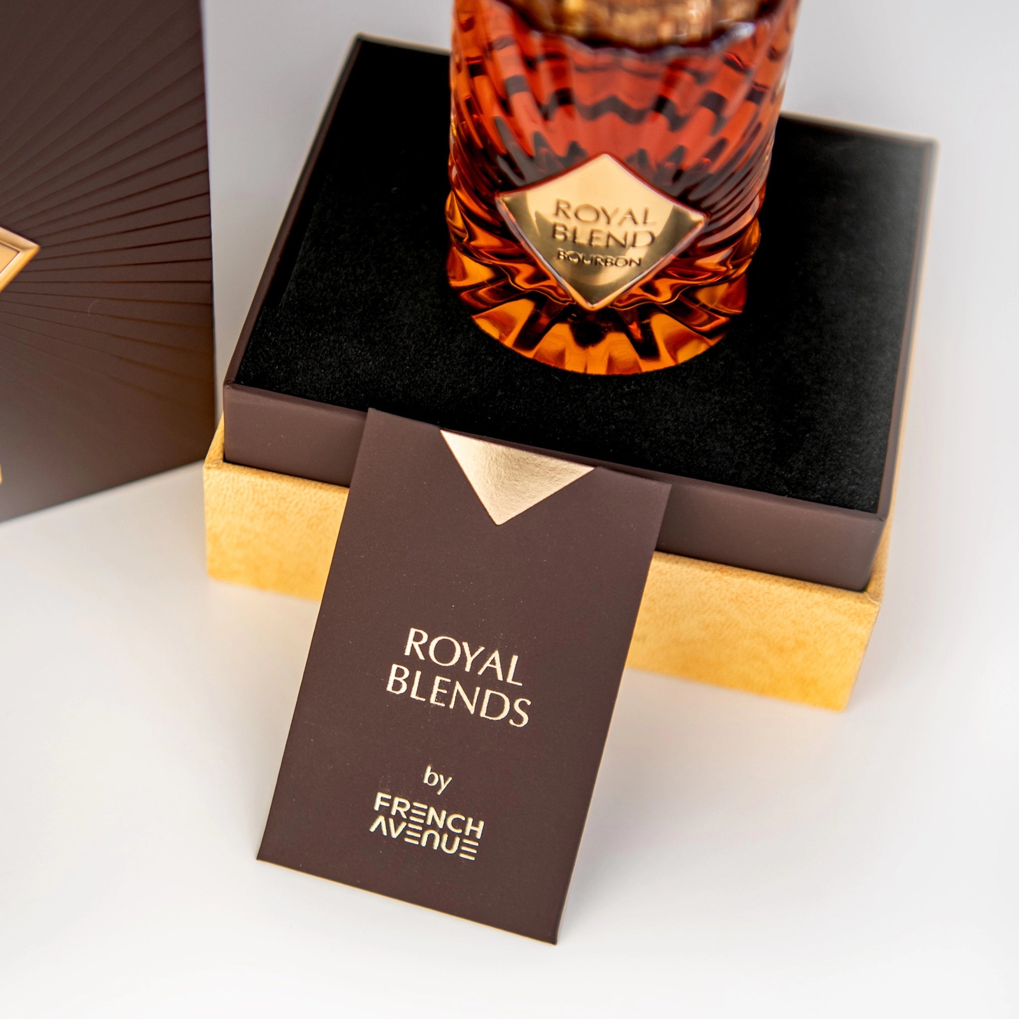Royal Blend Bourbon by FRENCH AVENUE is a spicy-oriental extrait de parfum designed for unisex wear. This fragrance combines the warmth of cinnamon bark and the freshness of peppermint and basil oil in its top notes. The heart reveals bourbon and lavender oil, while the base is enriched with oakwood and Peru balsam oil. UPC 6290360378411